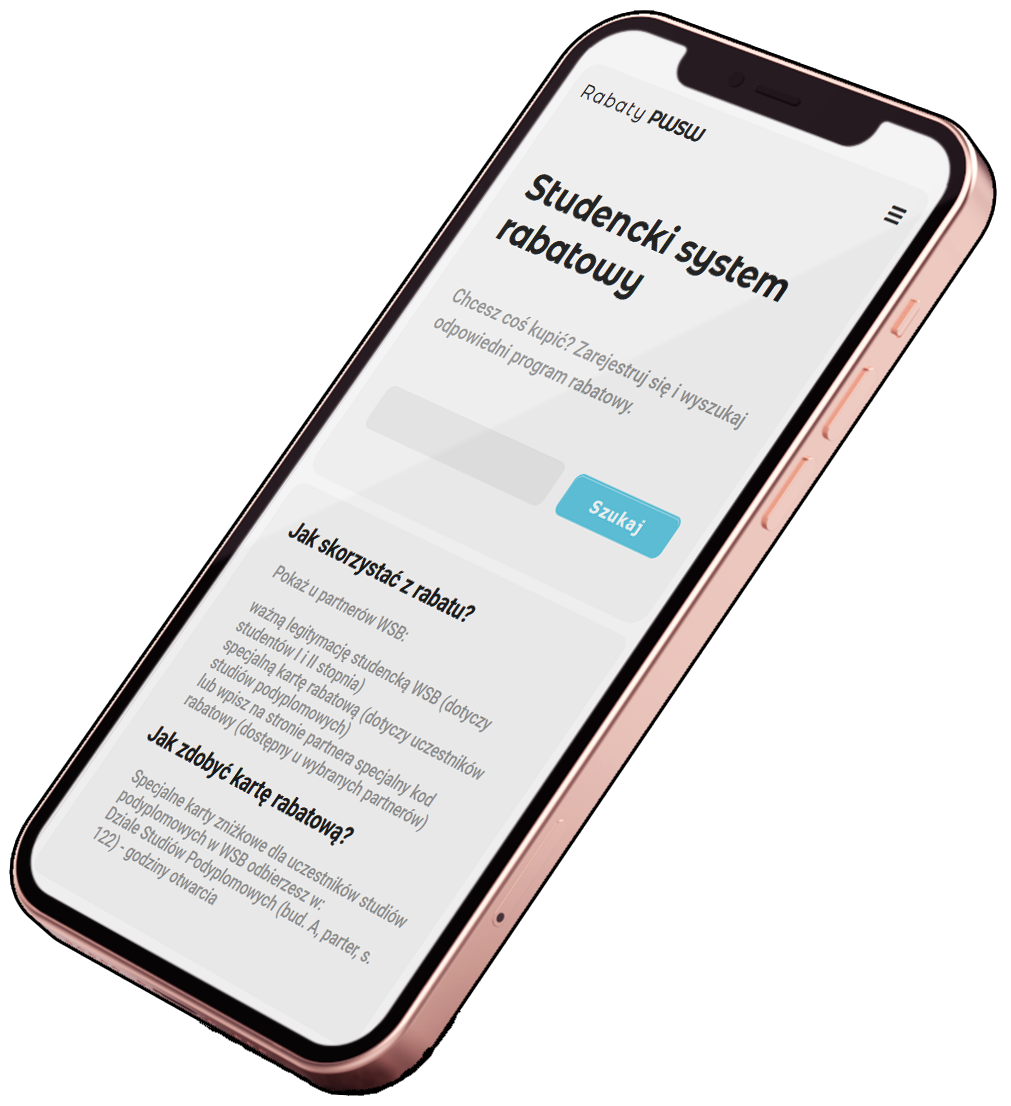specjalną kartę rabatową (dotyczy uczestników studiów podyplomowych)